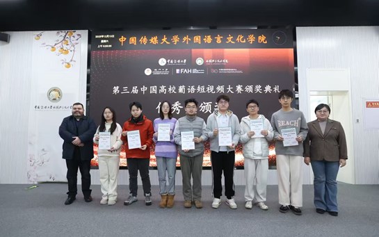 近日,第三届中国高校葡语短视频大赛颁奖典礼在北京圆满结束。本次大赛以“科创中国”为主题,旨在鼓励内地及澳门高校学生担起国际传播的使命,讲好中国故事,根据个人视角,以富有创意的短视频拍摄作品展现当代中国发展的面貌。大赛吸引了全国众多高校葡语专业学生的积极参与,竞争激烈。经过严格评审,我院葡语专业学生王文博以独特的视角、生...