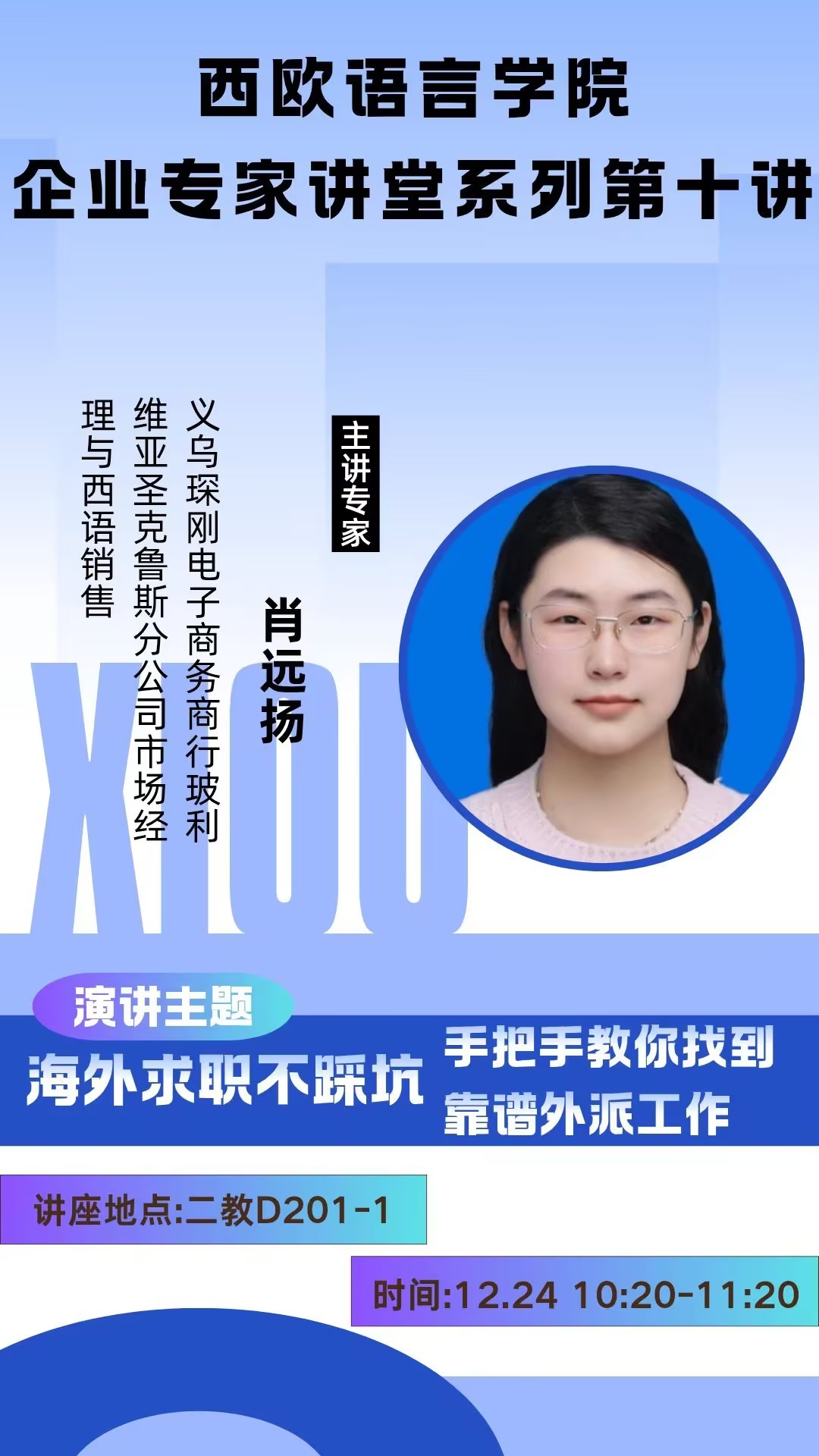 为帮助语言类专业学子精准把握海外外派工作机会,规避求职风险,12月24日,一场以“海外求职不踩坑:手把手教你找到靠谱外派工作”为主题的企业专家讲堂成功举办。