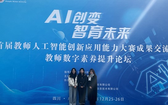 2025年12月25日,由成都师范学院主办的“首届教师人工智能创新应用能力大赛成果交流暨教师数字素养提升论坛”在成都成功举办。本次论坛以“AI创变,智育未来”为主题,我院严宇、陈禹蓓、张石嘉仪三位教师受邀参会。论坛聚焦人工智能在教育领域的创新应用与教师数字素养提升核心议题,集中展示了各高校在AI教学实践、课程深度融合、...