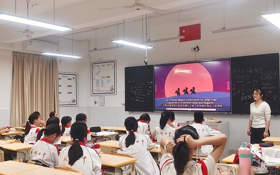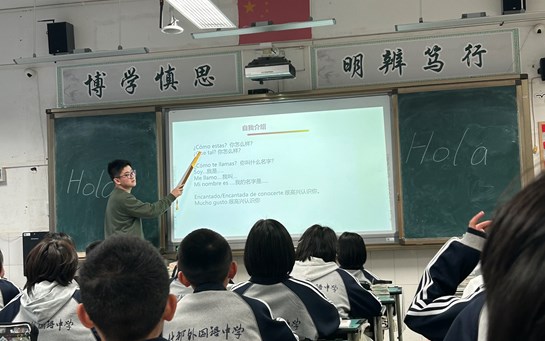 近日,我院西班牙语专业2023级学生曾泽旭在成都两所中学开展教学实践。他分别在成都石室中学初中部进行为期12周、在成都七中初中学校进行为期10周的西班牙语兴趣班教学工作。在教学过程中,曾泽旭注重激发学生的语言学习兴趣,通过组织情景对话、介绍西语国家文化和开展互动游戏等多种方式,帮助学生在轻松的氛围中接触和掌握基础西班牙...