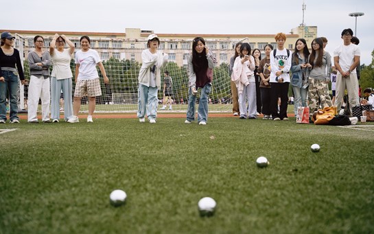 10月13日下午,我院法语专业的同学们在法语外教Marceau老师的带领下,参加了一场别开生面的法式滚球(lapétanque)体验活动。本次活动中,Marceau首先向同学们介绍了法式滚球的起源与发展。他提到,法式滚球不仅是一项体育活动,更是法国人日常生活中不可或缺的社交方式与休闲文化。在了解了法式滚球的基本规则和文...